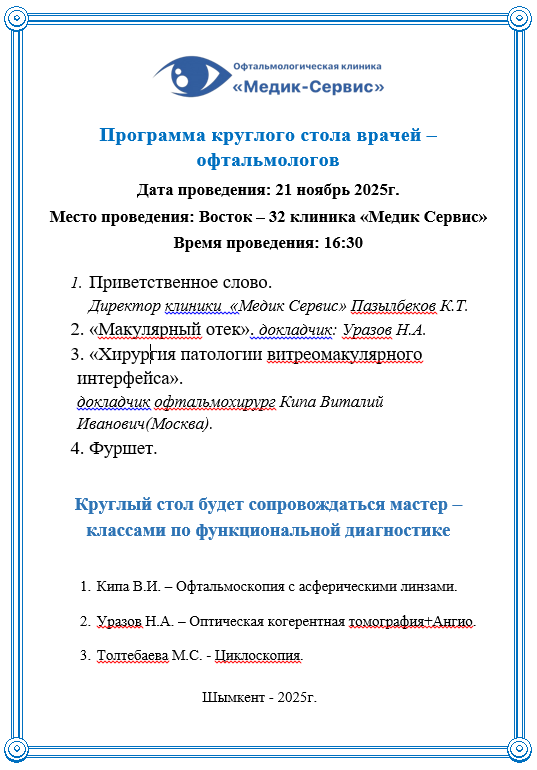 Провела мастер-класс по современной диагностике зрения, включая ОКТ и УЗИ-исследования.